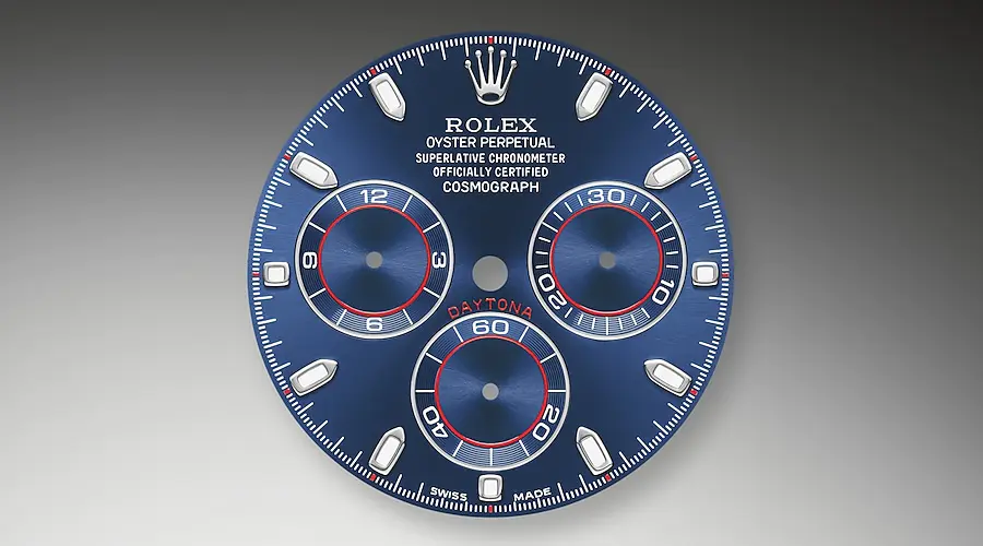 This Oyster Perpetual Cosmograph Daytona in 18 ct white gold, with a bright blue dial and an Oyster bracelet, features an 18 ct white gold bezel with an engraved tachymetric scale.